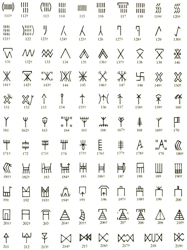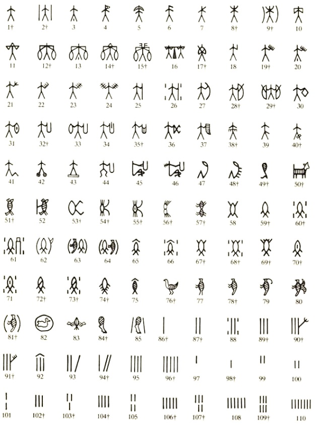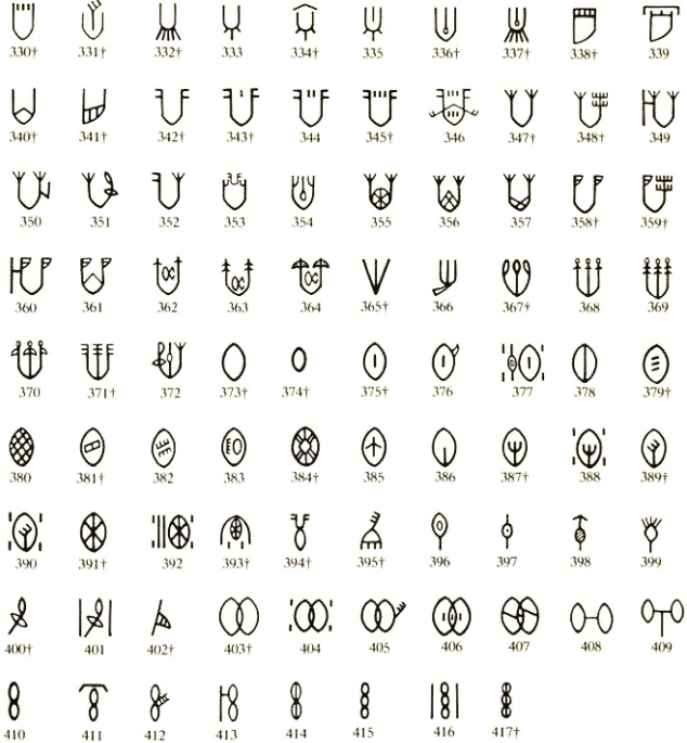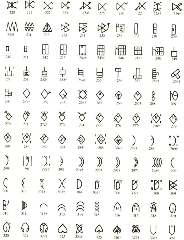 The Indus Valley Signs list from "Concordance and Tables -Iravathan Mahadevan"